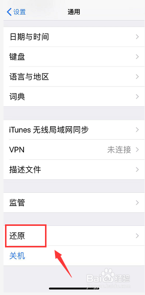 3、通用界面最底部点击还原,如下图所示