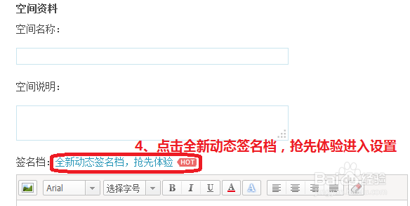 4、点击全新动态签名档,抢先体验设置