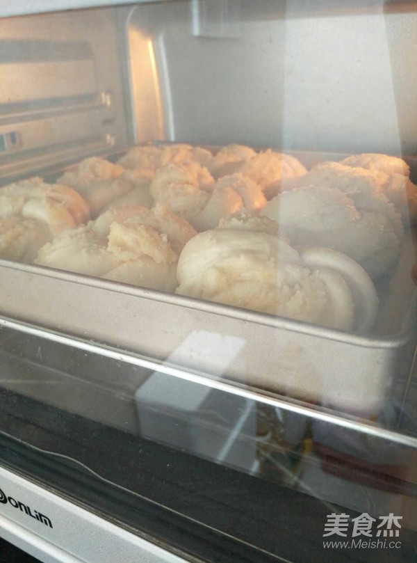 9、烤箱二发至两倍大。烤箱预热180度。上下管180度烤18分钟左右。