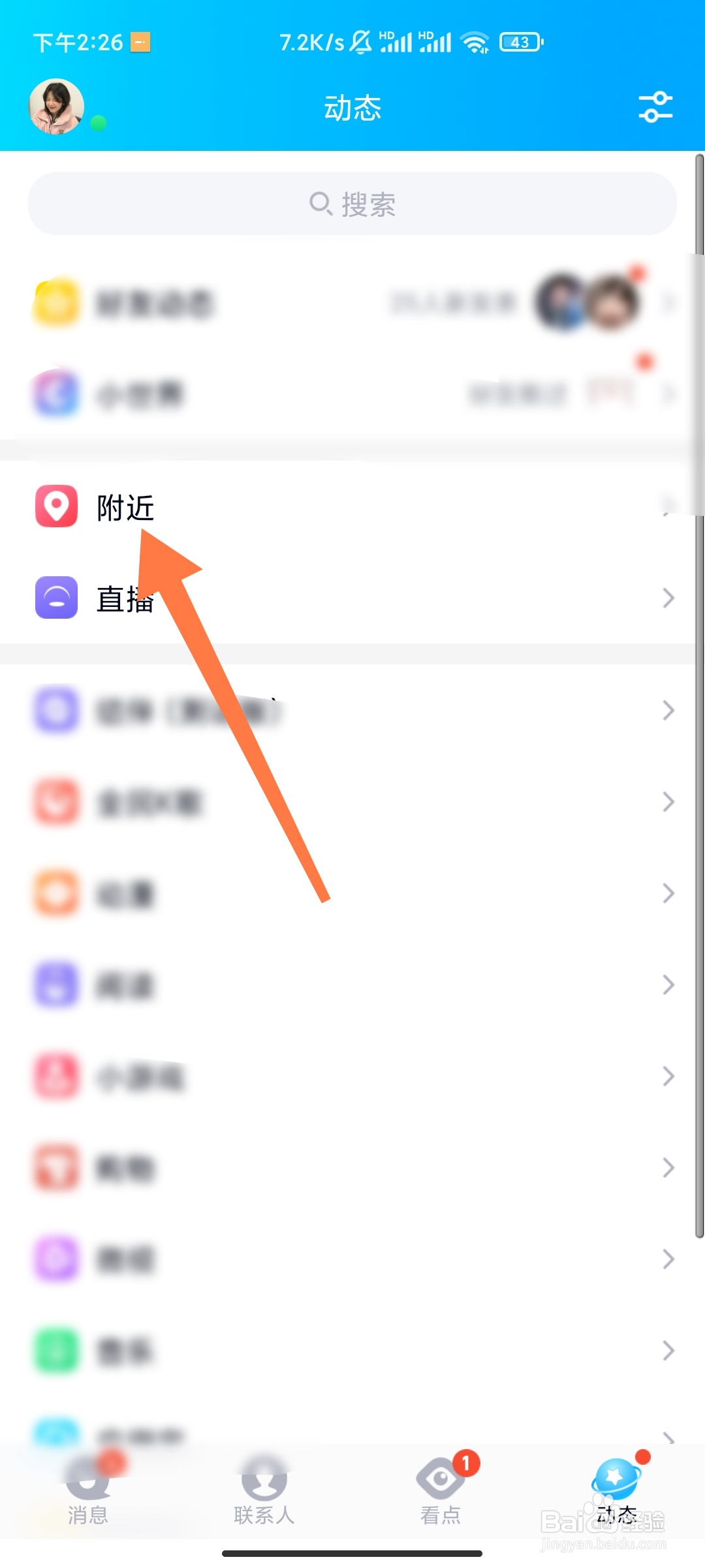 2、进入附近页面,在弹出的方框中,点击【自选所在地】。