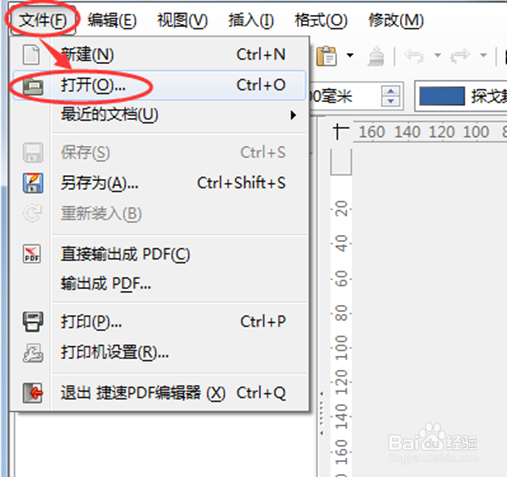 2、点击界面上的“文件——打开”按钮,添加pdf文件。