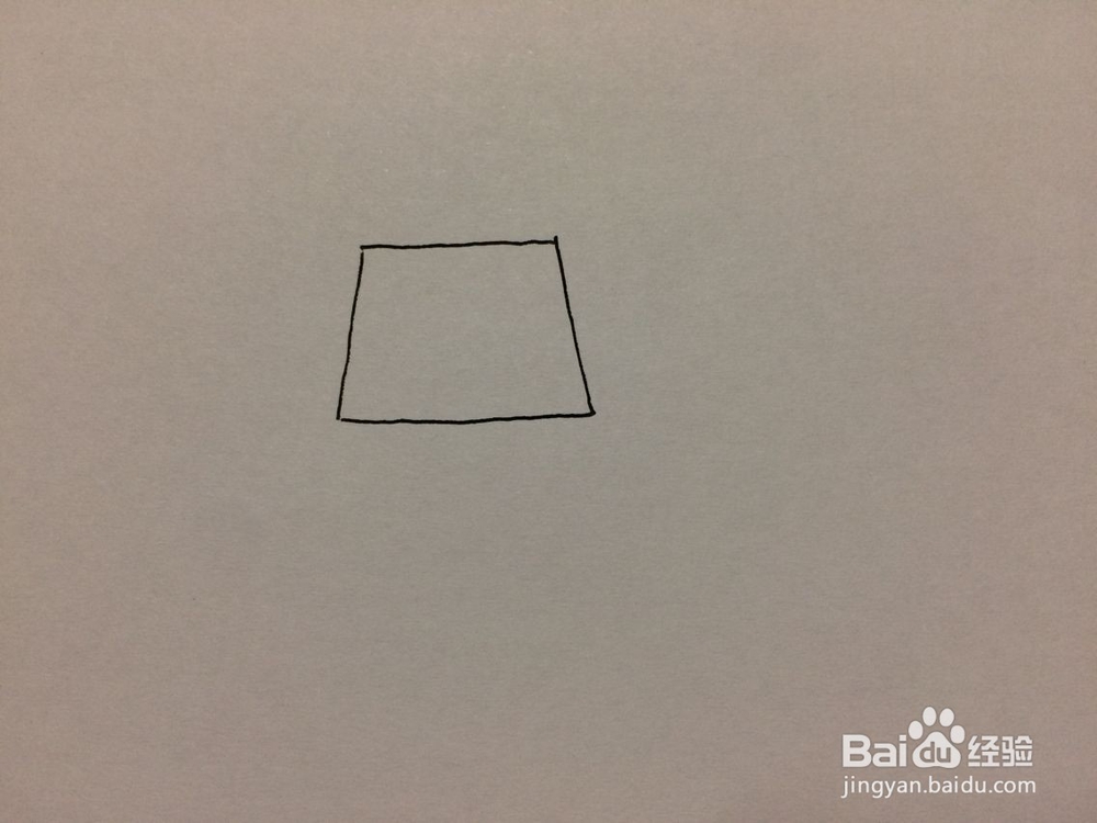 1、准备好笔和纸,先画出一个梯形的屋顶。