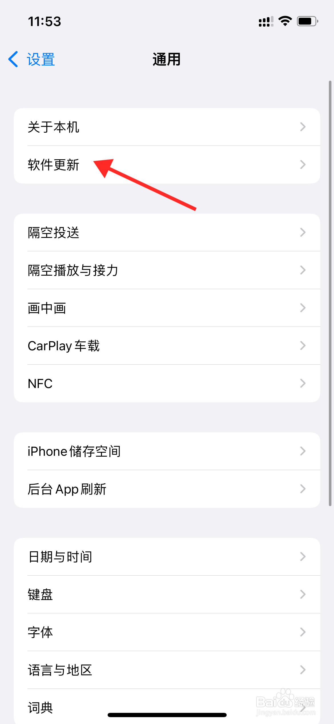 在通用设置里,找到软件更新功能。