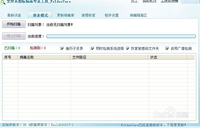7、选择完毕后,即可系统中的全盘进行文件夹图标病毒的扫描。