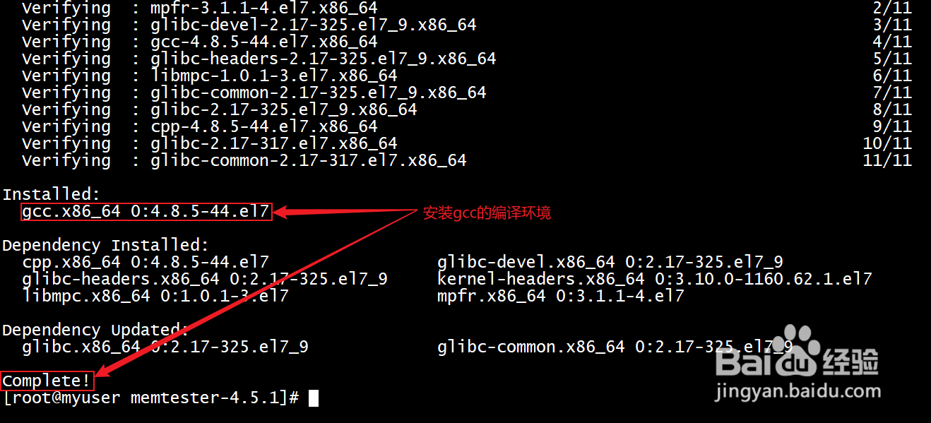 5、进入到解压出来的目录,并通过"make && make install"命令对memtester软件程序进行编译安装。