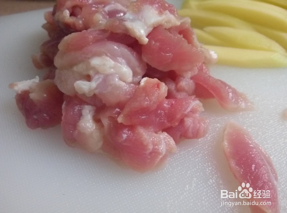 2、猪肉洗干净后也是切细条。