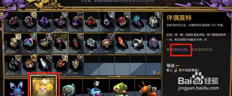 2、塔纳托斯玩偶莫特,送满蜜露好感,在比赛与回来后不停对话,直到出现塔纳托斯在左上角角落叹号,再送仙酒获得。