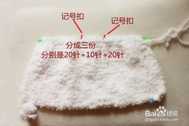 9、织到宽50cm 高25cm 开始分片 分三片 如图开织 最后缝合