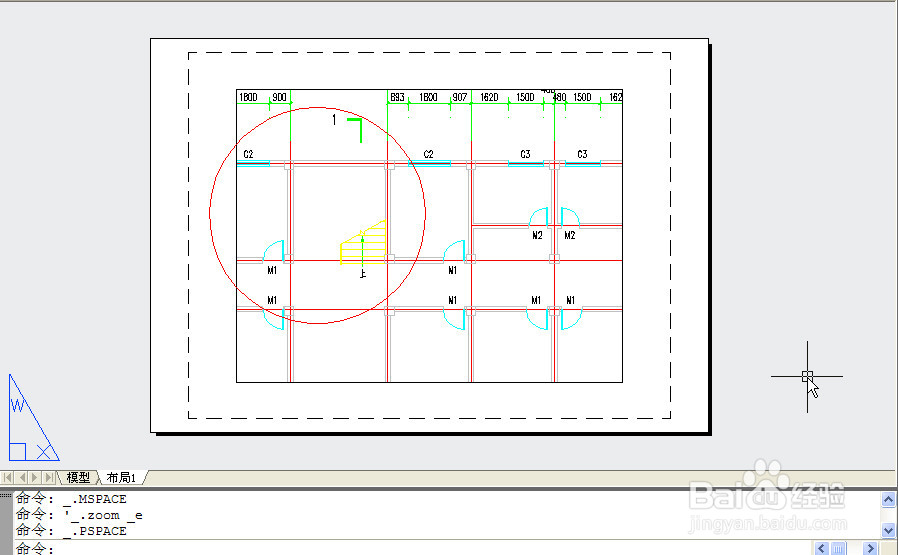 打开一张有图形的图纸,切换到布局空间,在图纸空间会内绘制一个圆作为裁剪边界,如下图所示。