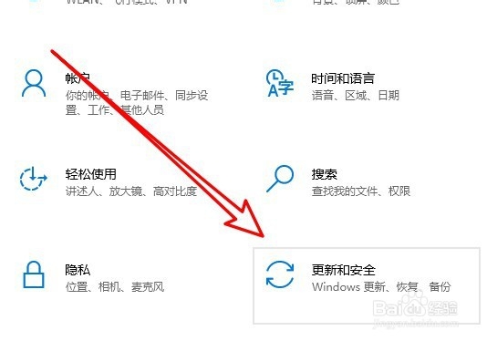 2、然后在打开的Windows10的设置窗口中点击“更新和安全”的图标。