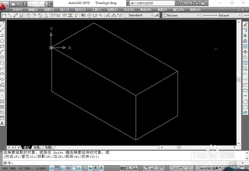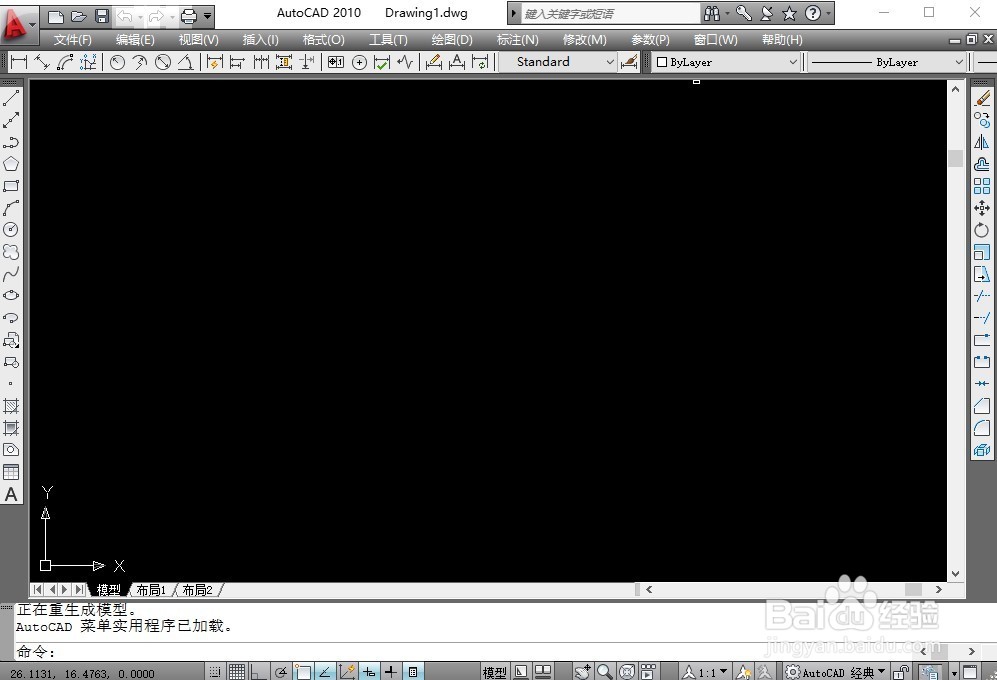 4、然后CAD的鼠标就变成斜“X”状啦,就可以开始画轴视图啦.