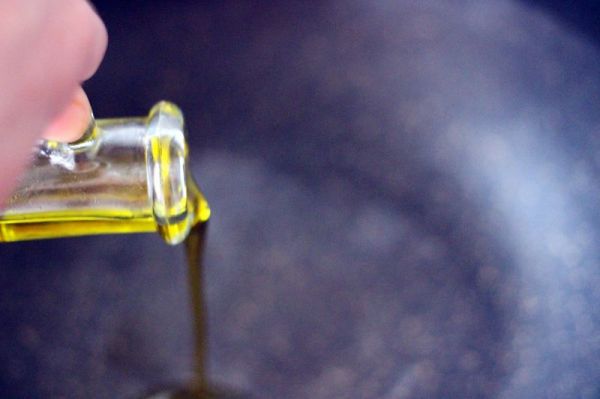 4、热锅加入10克橄榄油烧热、用小火慢慢把鳕鱼煎制
