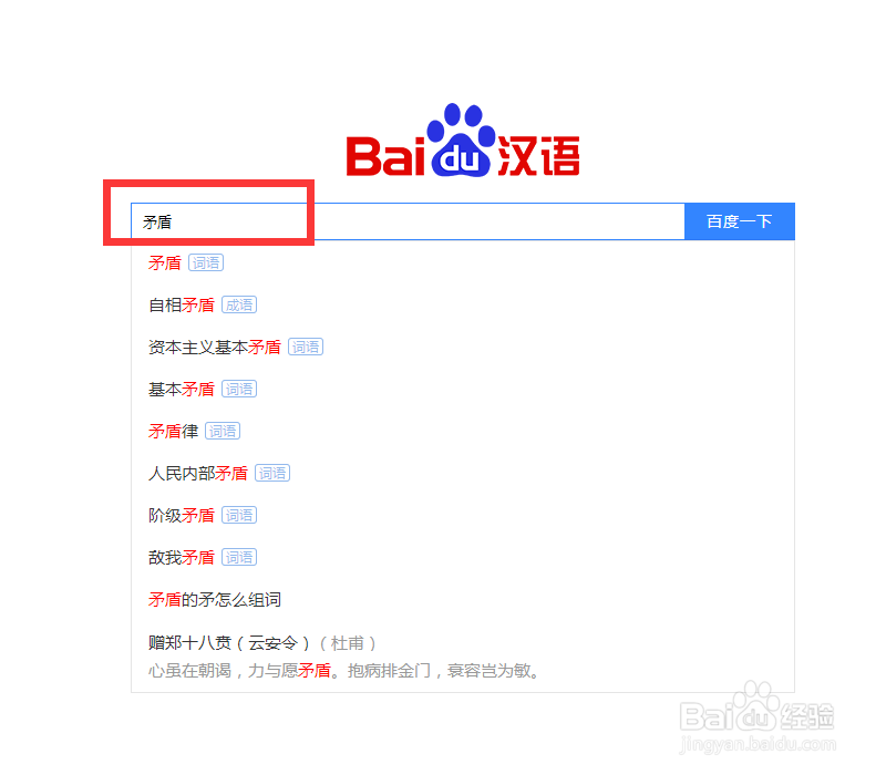 2、第二步,在搜索栏输入要查询的词语“矛盾”。