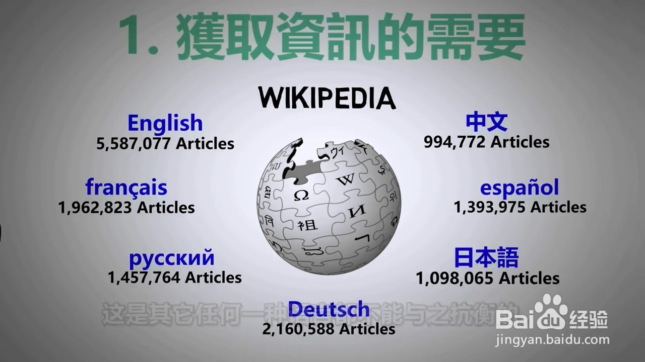 1、获取资讯的需要。首先我们来看一个简单的对比,维基百科作为互联网的最大百科全书。