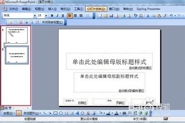 ②把开PPT母版视图后是否看到左侧有一张缩略图呢? 现在选中他,点击鼠标右键选择“新标题母版”,出现结果如下图所示: