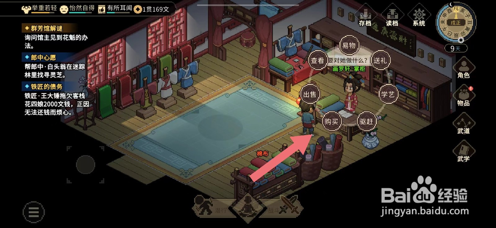 1、进入大侠立志传游戏,来到霖安城画罗轩,点击【画罗轩掌柜】