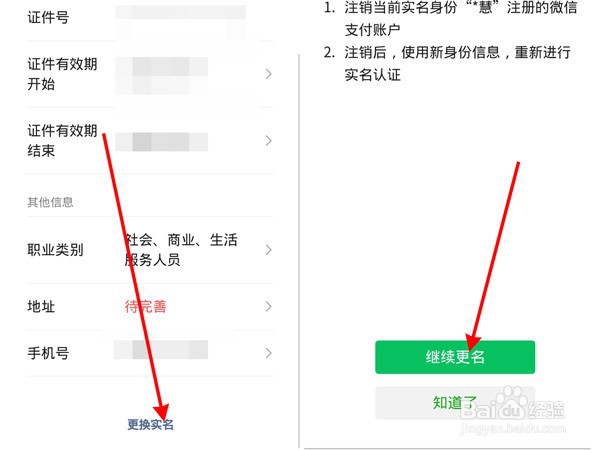 3、点击最下方的【更改实名】,点击继续更名,根据提示操作即可。