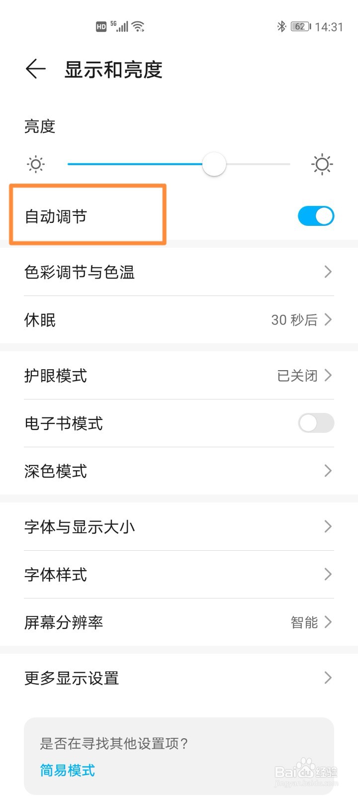 华为手机关闭自动调节亮度