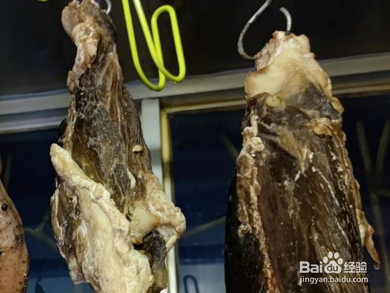 11、平时买菜绑的草准备三根,用水泡软煮一煮编成辫子晒去水分后穿到牛肉上,送人好看,承重能力好不会断喔!