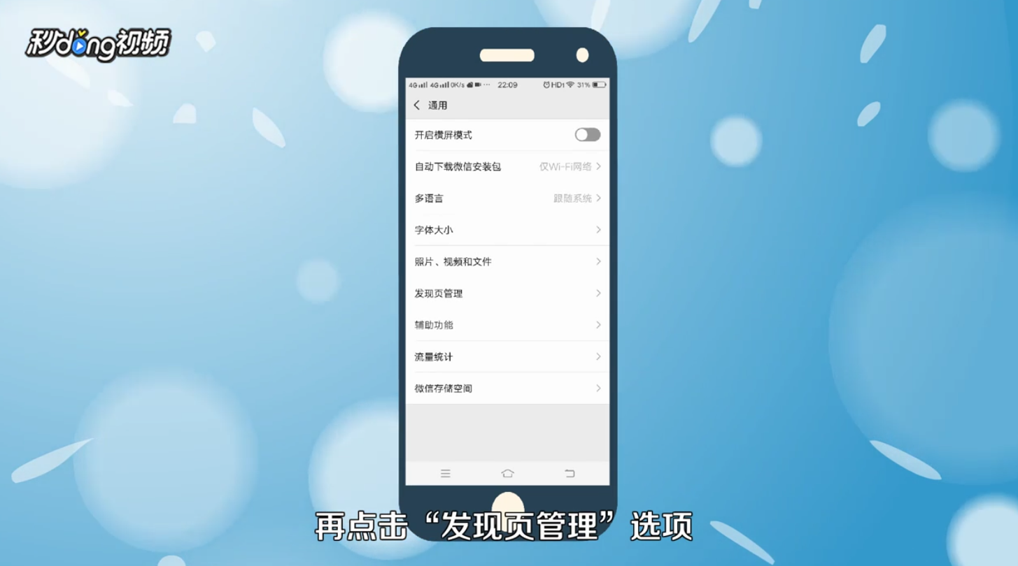 3、进入“发现页管理”后可以看到有“打开/关闭发现页的入口”选项。