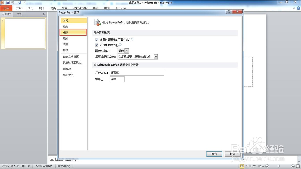 7、这样在ppt应用的字体,在保存的时候,就会嵌入到文件中。不管你把该ppt文档复制到那台电脑都可以正常播放。