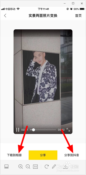 8、点击【下载到相册】,把视频传到抖音,或者点击【分享到抖音】,存到草稿中。