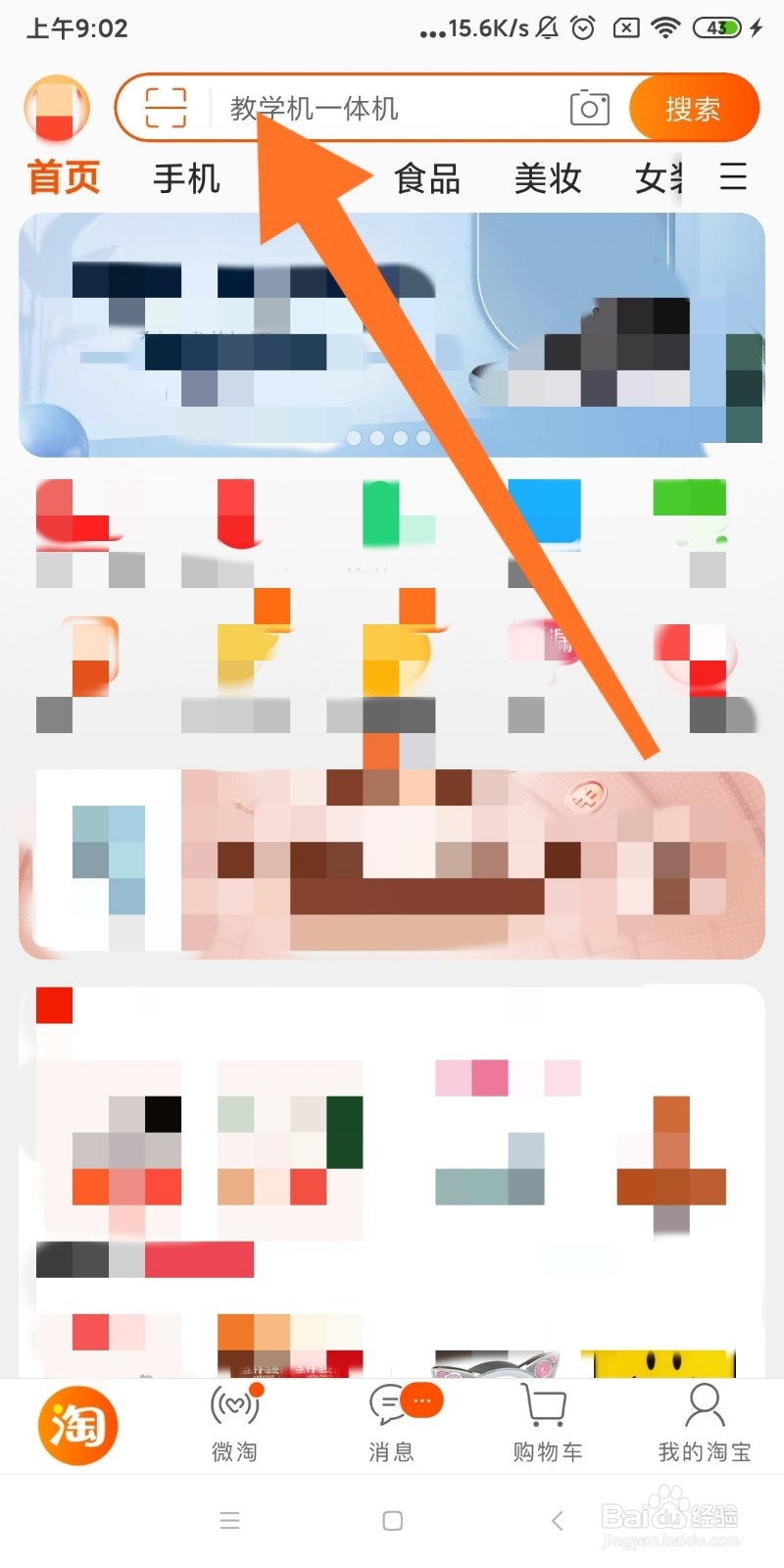 1、首先我们打开淘宝,在淘宝主页搜索想要购买的商品名。