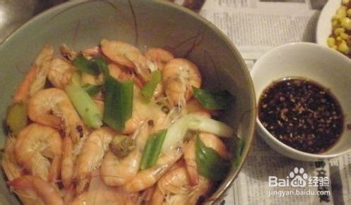 完全没啥子技术含量哈,先烧一大锅水,等水烧开,将洗干净的基围虾下锅,然后将切好的葱段、姜片一起下锅,用漏勺翻转虾子,等锅里的水再次沸腾,就出锅装盘。。。。。配上姜醋蘸水汁,灰常的嫩,大大的好吃哦!