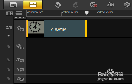 2、选择视频轨中的视频素材,将鼠标移至视频素材的起始位置,当败趣鼠标呈双向箭头形状时,单击鼠标左键并向右拖动。