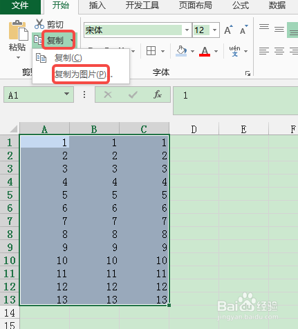 3、然后,我们点击功能区的复制按钮,点开右边的三角,选择复制图片。