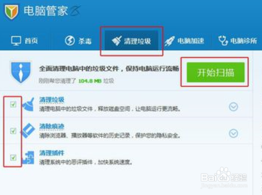 5、方法3:电脑运行速度越来越慢的原因是因为电脑垃圾文件太多,用电脑管家清理一下。