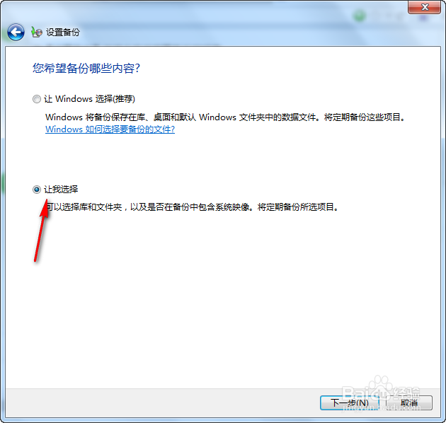 6、在新的对话框中手动选择要备份的内容,通常使用该功能备份系统设置与个人文件,如果需要,也可以选择备份其他磁盘中的文件
