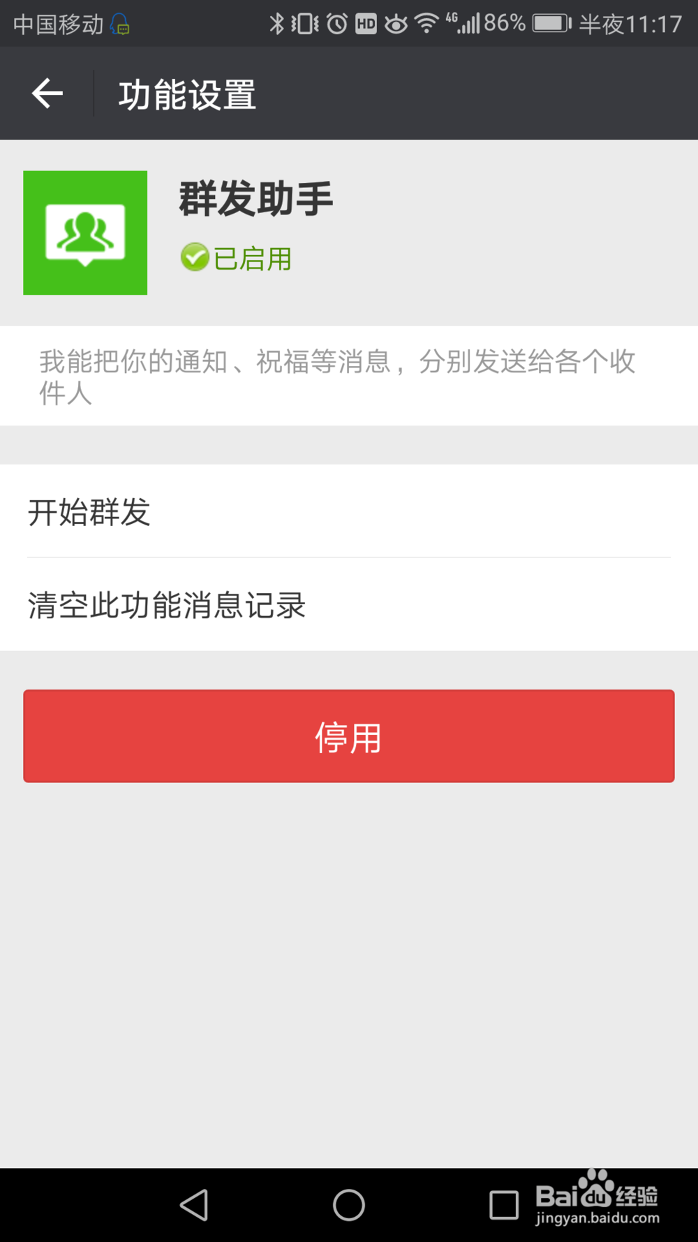 3、点击群发助手,显示未启用该功能,点击启用,现在我们就可以开始群发消息了