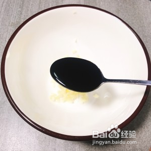 2、碗中加一勺蒜末、两勺老抽、一勺灵魂猪油、一勺香油、半勺黑胡椒粉,干拌面酱底完成了。