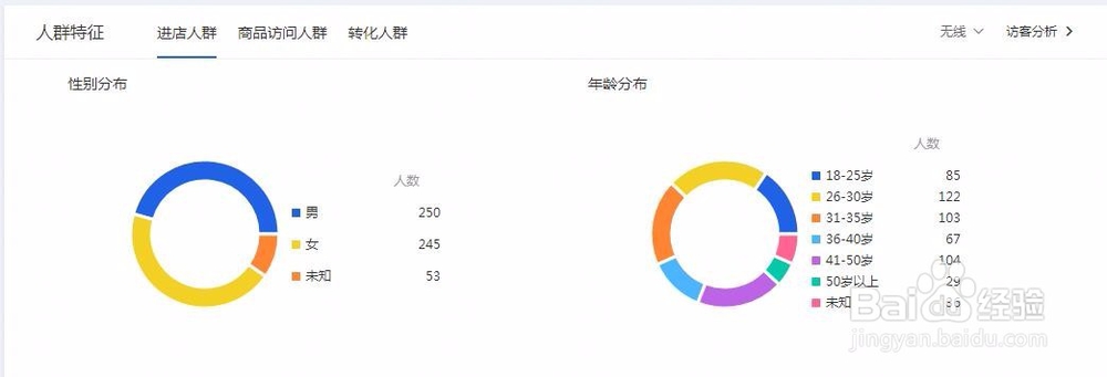 4、访客地域,人群,行为特征,这三项数据主要是为直通车的地域出价,人群行为出价提供数据支持,通过对占比的分析做出直通车的溢价比例。