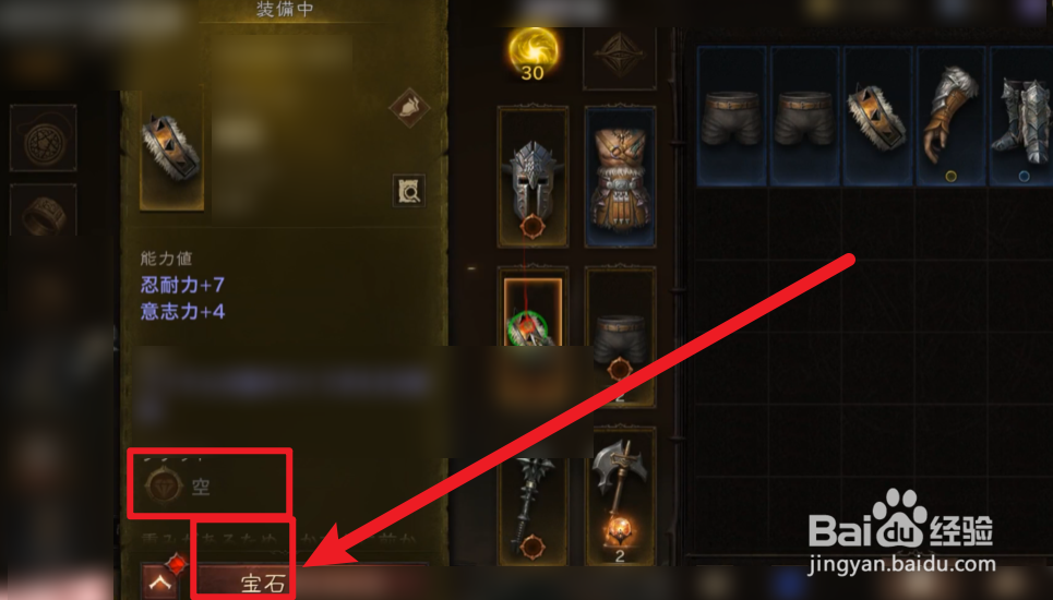 3、最后,点击选择”宝石“镶嵌到装备上的空置空位上。