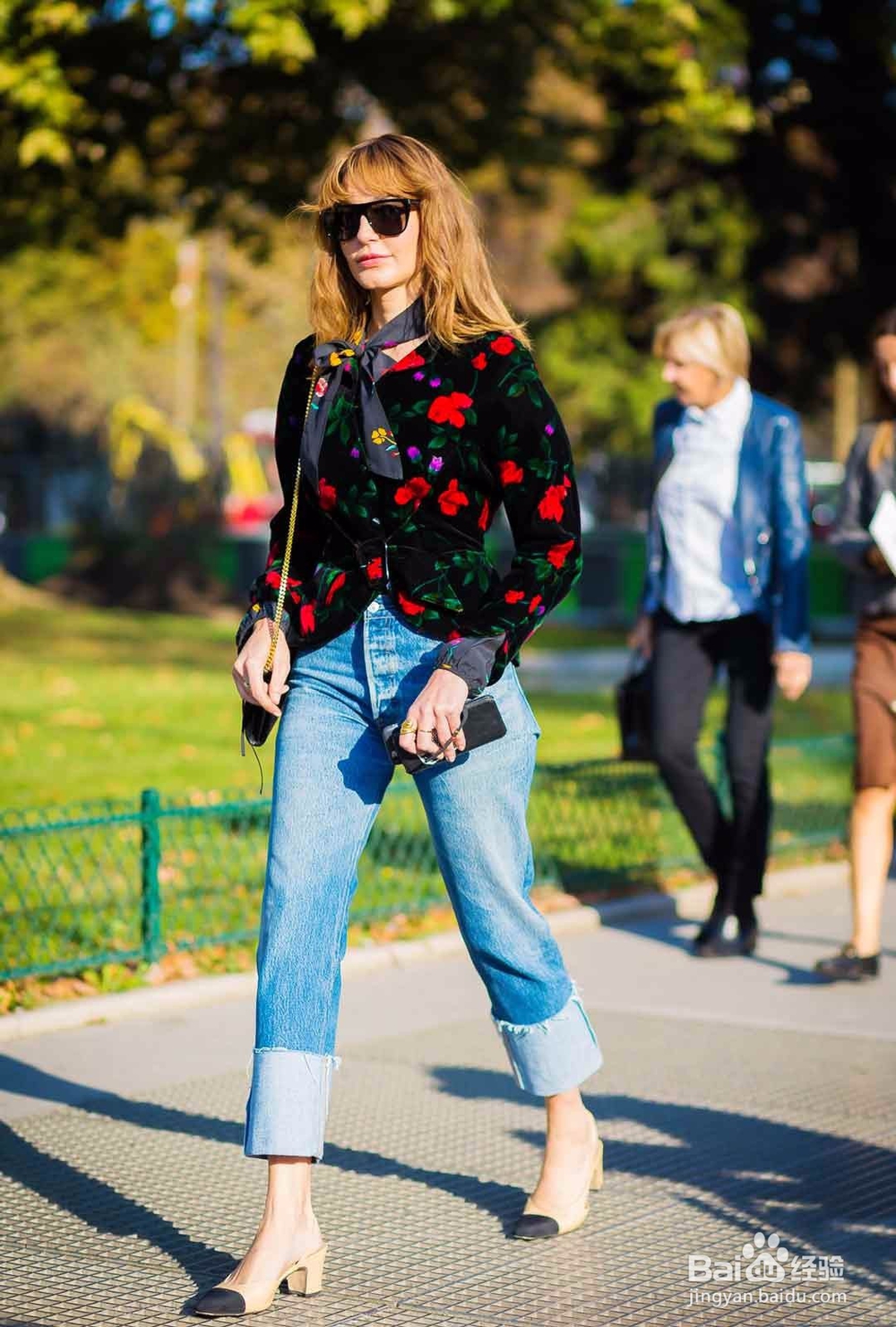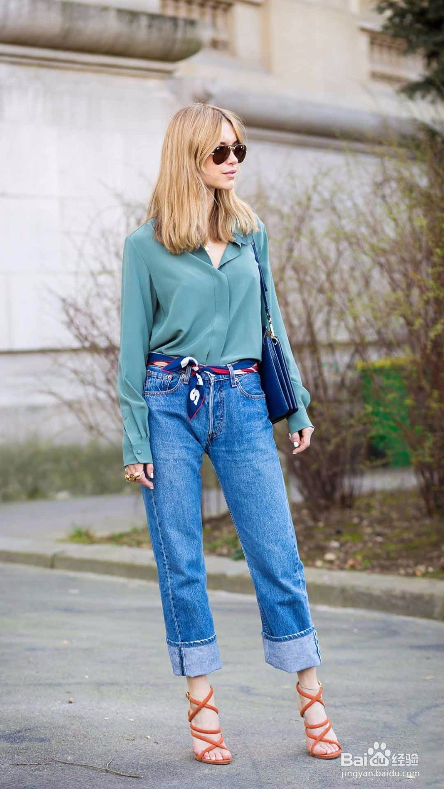 3、丝巾系在牛仔裤的腰间,似乎有种低调的奢华感。