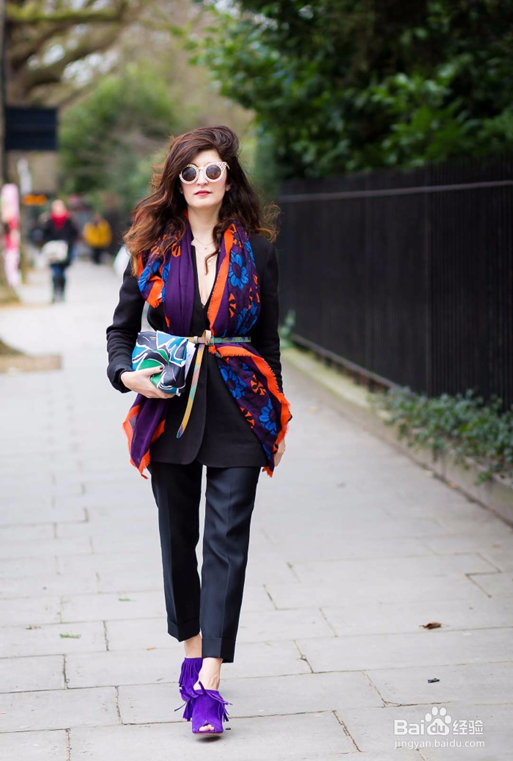 6、色的长丝巾搭配英伦风的套装,也能碰撞出强烈的火花。