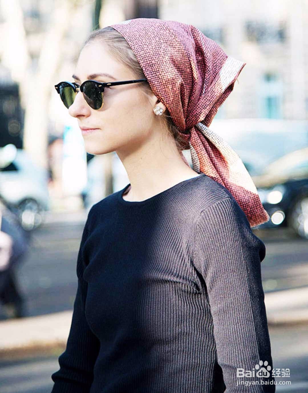 9、这种系在头上的丝巾似乎带着一种复古的气息,不过时间轮回,这种搭配的方法又在时尚圈流行开来。