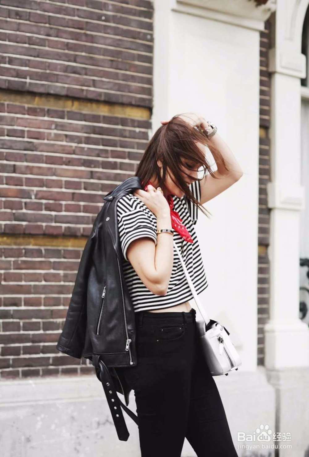 4、一条红色的丝巾还可以搭配永远不过时的那件条纹T恤,带着跳跃感的时尚美。