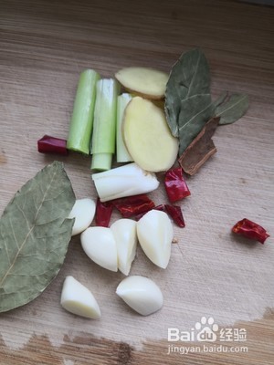1、准备葱姜蒜干辣椒段香叶桂皮
