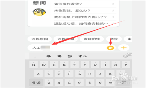 接下来,可能机器人还会让你说一下自己的问题是什么,你就坚持发送“人工”,一般发两三次左右,机器人就会为你接入“人工客服”,接入人工客服的话一般会有小编图中指出的那种提醒。