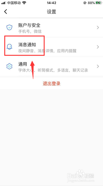 2、在设置页面上方点开消息通知