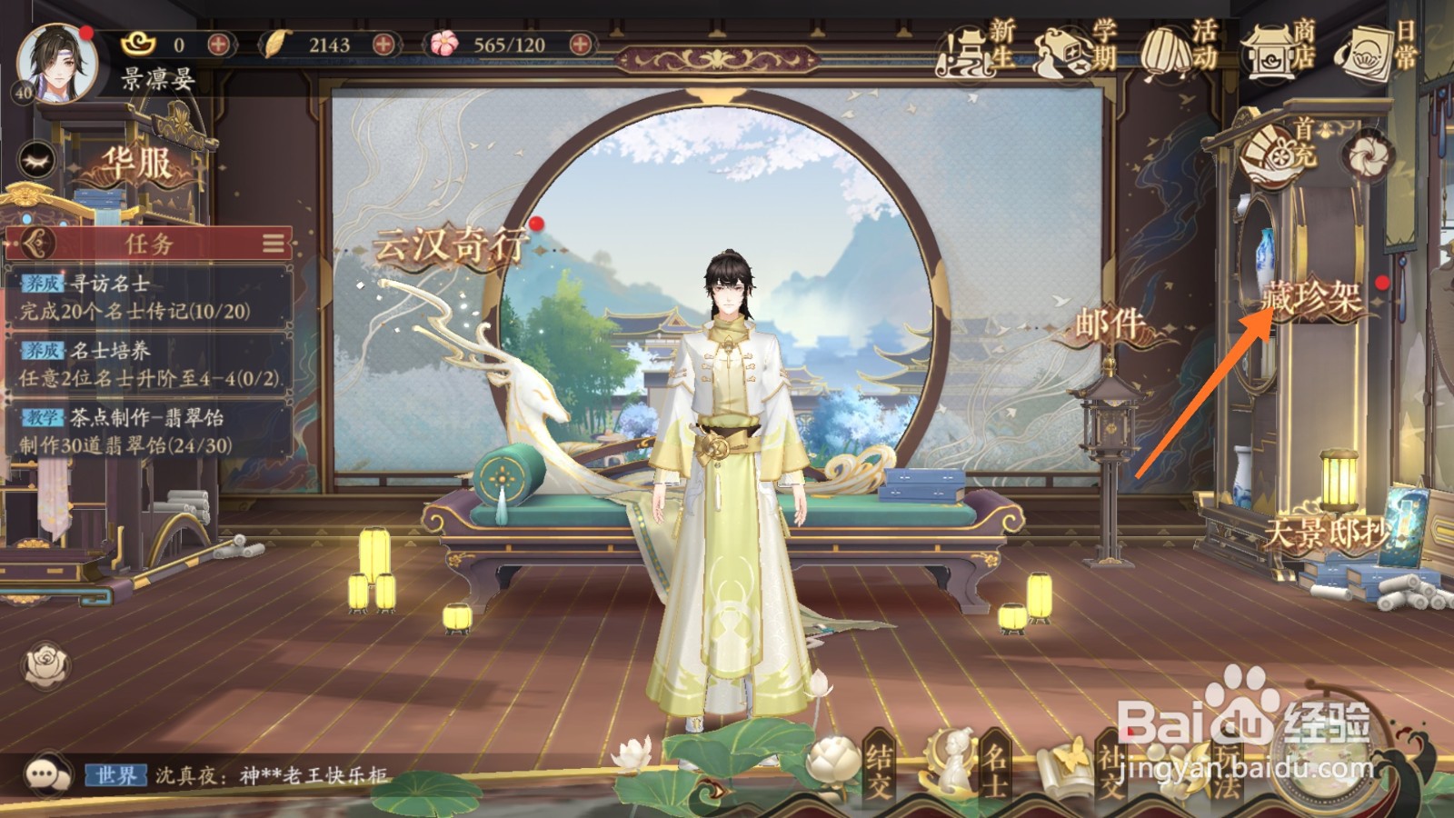 2、在打开的藏珍架中,点击其中的书院成就,接着选择足迹图标。