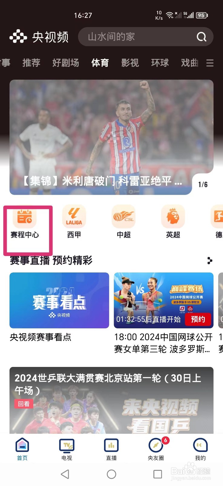 2、在体育页面点击【赛程中心】