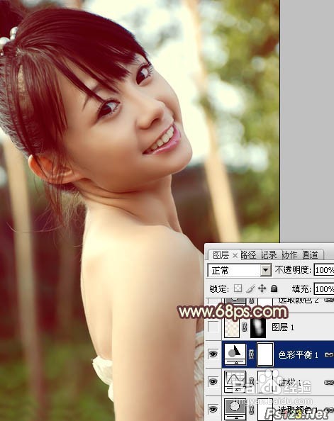 用Ps给外景美女图片增加淡淡的青黄蜜糖色