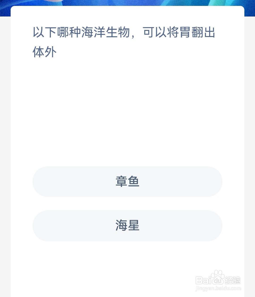 2、神奇海洋3月30日问题: 以下哪种海洋生物可以将胃翻出体外