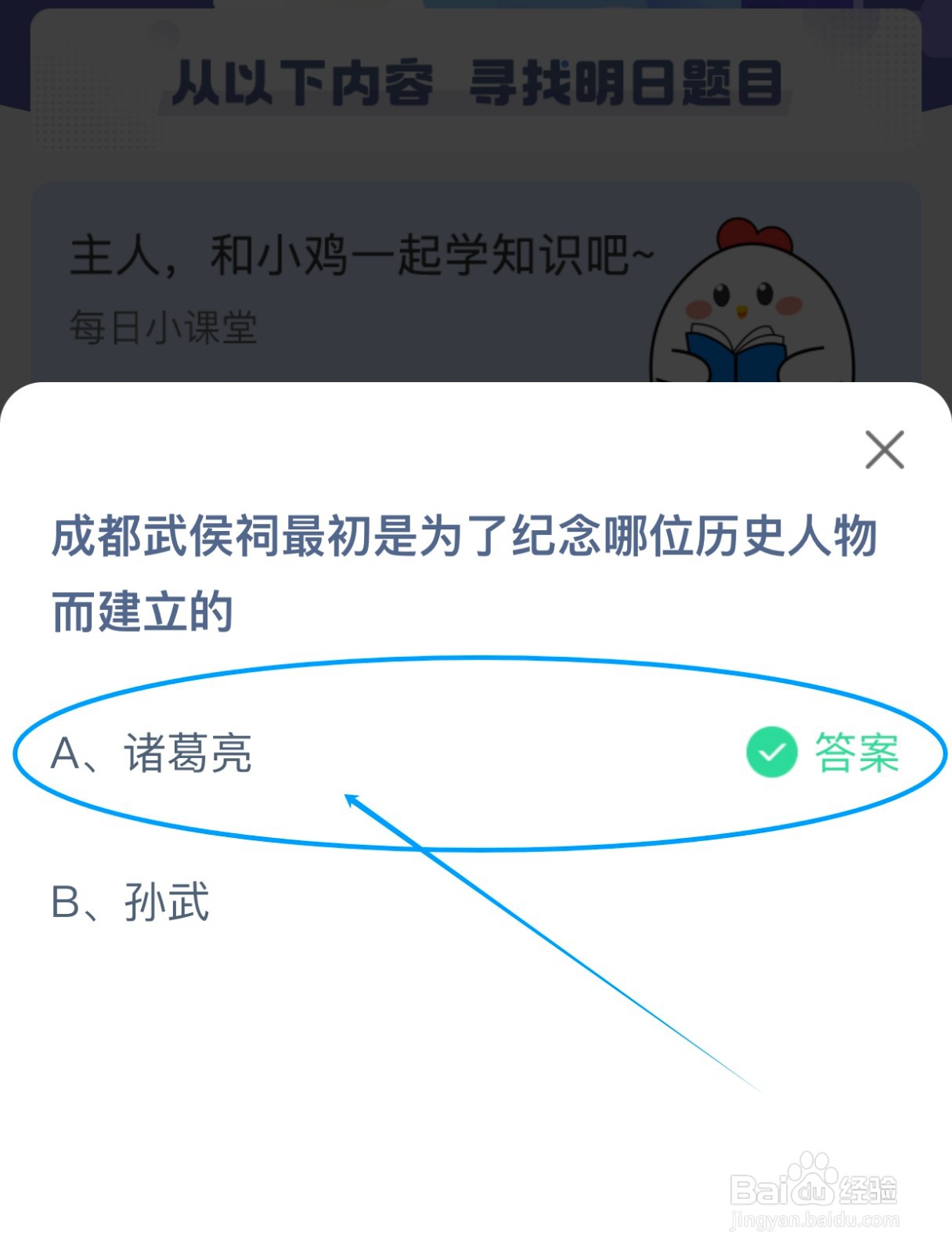 2、蚂蚁庄园小课堂今日题目二:成都武侯祠最初是为了纪念哪位历史人物而建立的?