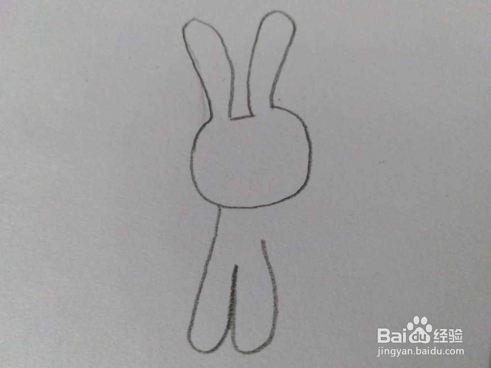 1、首先先画一个圆,在画出兔子的两只耳帮信朵。