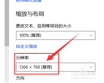 3、选择屏幕分辨率,分辨率改为推荐即可